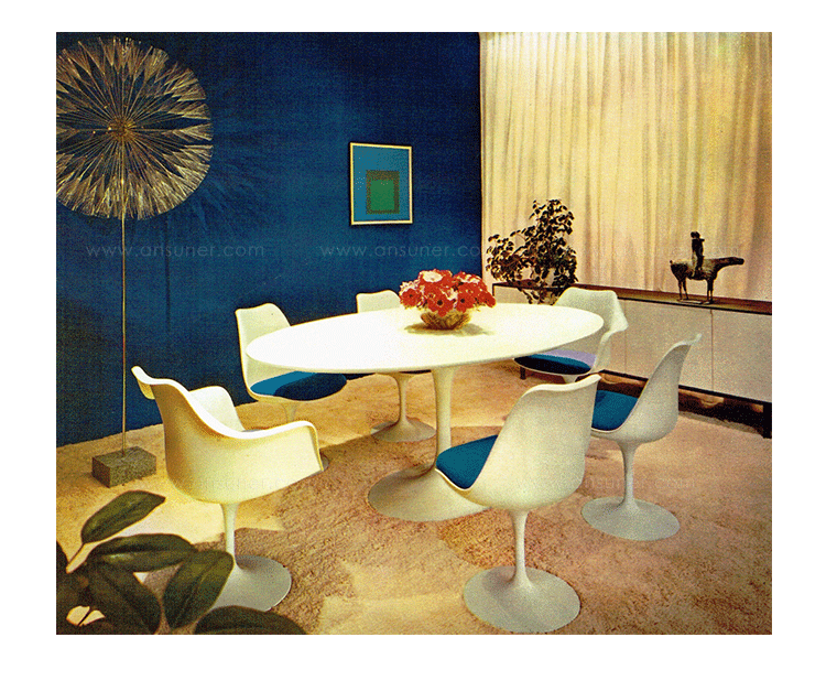 他的设计方法是纯粹的,芬兰出生的艾罗沙里宁追捧出来的基本思想,并将其降低到最有效的结构性解决方案。1956年在它的基础上他设计了郁金香椅,而不是一个特定的形状。 “在任何设计中的问题,应该寻求的下一个最大的事情方面的解决方案。”他说。 “如果问题是椅子,那么它的解决方案必须在其涉及到房间的途中发现......”在郁金香沙里宁实现了他的正规统一的理想:“每一件家具都有一个整体的结构。”1969年赢得了现代博物馆艺术奖,郁金香是沙里宁最具有天才的设计。