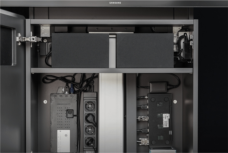 纤细的移动多媒体墙W8凭借着高功能性和灵活性的设计令人喜爱。集成的插头和播放控制系统提供了一个自由的多媒体方案,改变了用户的会议自由性。多种屏幕尺寸可供选择,适合于各种大小不同的会议室要求。