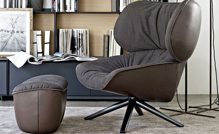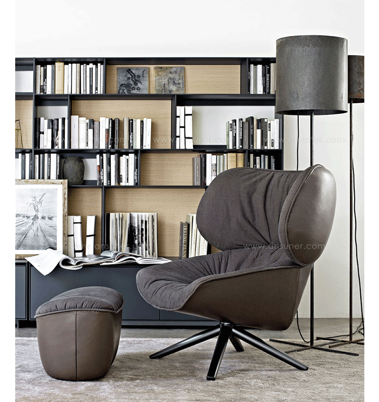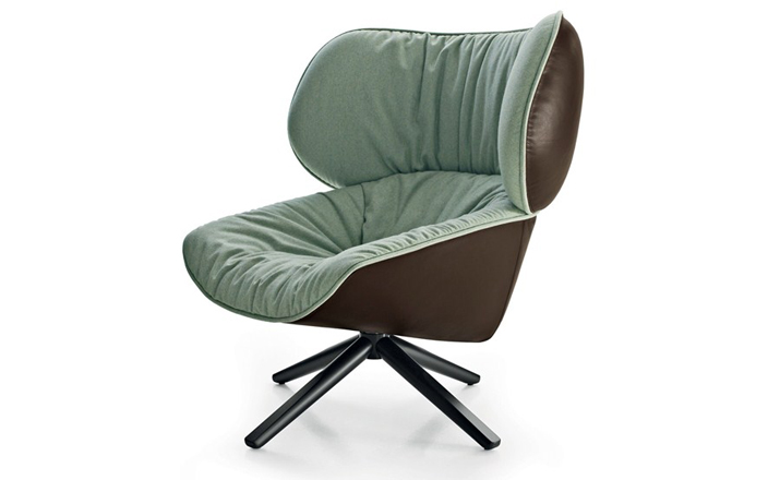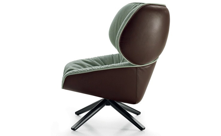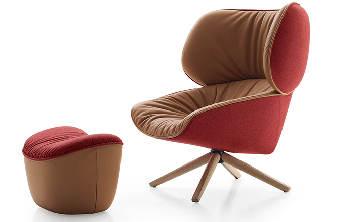 现在可以很明显的看到,追求柔软舒适,一向是Patricia Urquiola的作品中不变的主题。旋转扶手椅Tabano代表着一个重要的阶段,由Husk首次体现这个宣言,其共同特徵是椅背皆插入大型幅条。这也可以说是追求舒适,定义出它的曲线与大容量的椅座与椅背。 大耳朵般的设计来自于满足功能标準上的需求,更甚,这是一种超越美感经验的慰藉。它的外观唤起好奇心,极富表现力,一点都不保守。 对卡通视而不见的揶揄,它同时向大师传承下来的作品,与对先前建立起难以超越的躺椅表示敬意。饰面分别表现出紧緻的外表和轻鬆的内侧。内外侧皆被Tabano完整定义,加入了拉鍊和人造皮革绕起整座外围, 具张力的饰面投射出对比的乐趣。Tabano在黑色聚氨酯旋转底座或橡木(浅、灰色和黑色)有布料或全皮外观,或这两种材料的组合, 脚凳更有椭圆形和其类似座椅的衬里。