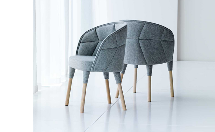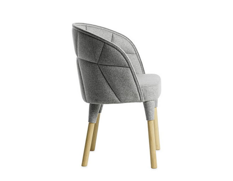 “Emily is our Emma easy chair’s little sister. just like siblings, they are similar but still different. The family likeness can be seen in the needlework: they are both upholstered, but differently pat- terned. The needlework is a function which also creates a powerful idiom. The special technique employed is based on a classical craft, while at the same time occupying the leading edge of technology. Emily is a comfortable chair, equally successful round the dining table and at a conference table.”