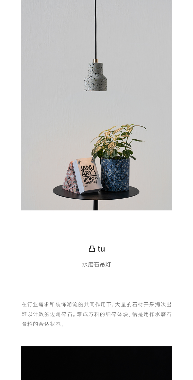 以材质再生为基本手段的水磨石系列,将陶瓷废渣再生成简洁形态的日常性家具,以衍生产业的形式回归到大众层面的使用中。 中国佛山,这片拥有全球最大最成熟的陶瓷产业链和产业集群的建筑陶瓷工厂的土地,承载着每年400万吨陶瓷废弃物带来的环境污染。 以材质再生融入日常,不仅是激发商业价值的大胆尝试,是环保理念的日常化实践,更是对自我尊严的基本坚守和追求,我们探寻陶瓷跨越地域局限的一种当代突破!