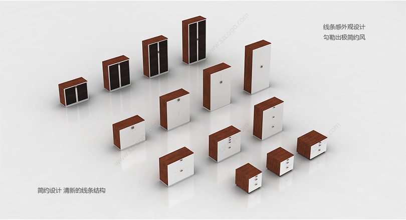 舒适的颜色,时尚的造型,流畅的线条,尽显现代办公的简单与大方。干净利落的造型,温暖的色泽仿佛整张桌子沐浴在阳光下。