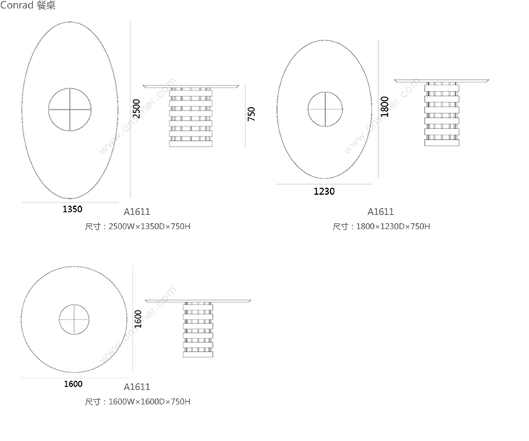 Conrad 餐桌 系列尺寸/示意图