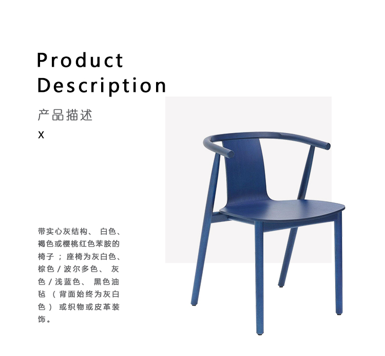椅子采用固体灰结构,白色染色,鸡蛋染色或樱桃红色苯胺; 座椅为灰色或白色,棕色/波尔多色,灰色/浅蓝色,黑色油毡(后表面始终为灰色)或软垫布或皮革。