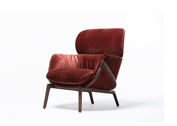 Elysia Lounge Chair(爱丽霞休闲椅)是意大利著名设计师Luca Nichetto的经典作品。Elysia Lounge Chair是高级木工和精细剪裁的完美结合。实木脚架精妙地固定着坐垫和靠垫,并巧妙的隐藏在衬垫里,外露的脚架同时展示了高超技艺和木材的优质。制作采用榉木/水曲柳/胡桃木/实木脚架、内部填充高密度沙发棉、表面扪进口羊毛绒或麻布或PU或真皮。