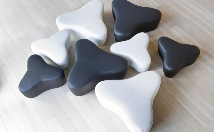 Chat Pouf(聊天墩)是日本著名的工业设计师Hiromichi Konno的作品,造型是立体的三角星形,线条优美流畅。这个坐垫凳适合于各种各样的环境中和不同的使用方式。颜色吸引人,自然,简约,简约。Chat Pouf质量很轻,便于移动和存储,采用高密度发泡海绵内胆、进口布艺或皮革(颜色多选)。