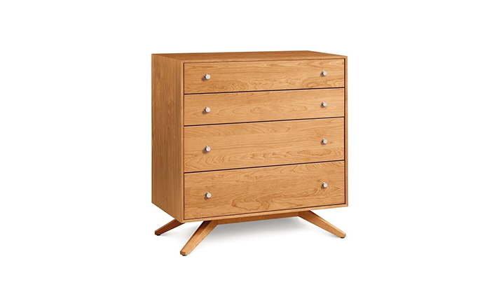 astrid 4 drawers dresser(阿斯特丽德4抽梳妆台)是Copeland Furniture公司astrid实木梳妆台系列之一,宽大的八字形脚架非常吸引人注目,制作并非易事,它其实是一个大工程,同时能引发无限期望和激情,4个平滑抽屉,可以给与提供许多存储空间。制作采用精选MDF板基材、进口美洲胡桃或水曲柳或枫木皮贴面、实木脚架、环保净味油漆喷涂、做工精湛。